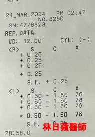 這麼熟的白內障通常術後誤差值會比較大,但人員們細心量測,術後度數還蠻準的呢!
