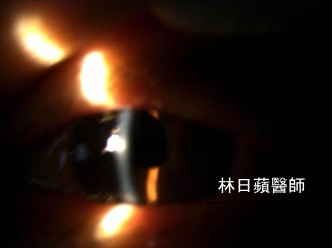 術前可見角膜到白內障的空間非常狹窄 (正常人約3mm以上的空間)